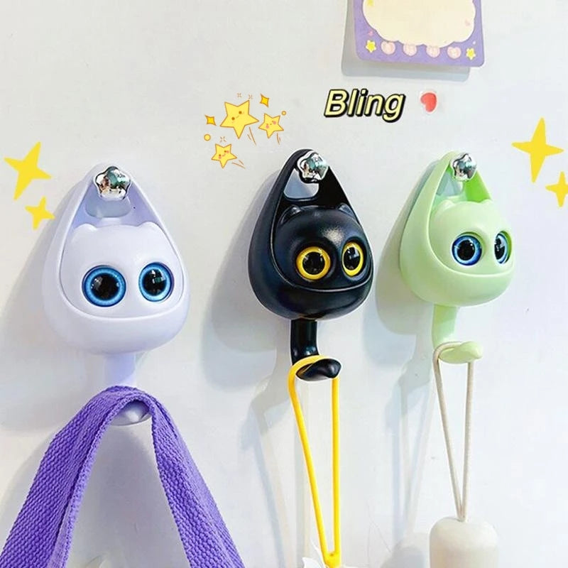 Ganchos de gato de dibujos animados, ganchos adhesivos de pared autoadhesivos, sombrero, bufanda, almacenamiento de llaves, ganchos para decoración del hogar, accesorios de baño, 1-5 uds.